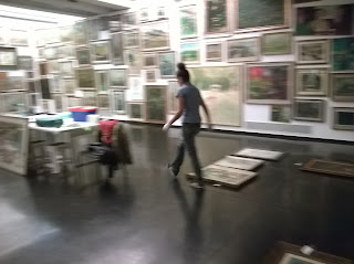 Ieri 26 agosto mentre facevamo merenda ho visto il cestino di 50 metri di filo spinato che comprai qualche mese fa solo per la sua bellezza, ho pensato di portare ancora più distanza tra i quadri e i fruitori, di metterlo al limite dei sostegni dei neon tutto intorno alla sala, così da proteggere quadri fulmini e persone da loro, un confine deciso, pericoloso, come era quello della FIAT, la terza fabbrica occupata, alte reti, alti muri, arrugginito ferro spinato, cocci di vetro "incementati", i confini possono essere anche qualcosa di prezioso, e di vulnerabile per la potenza dello spirito del bisogno o della ribellione.