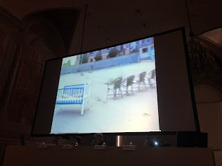 Imbarazzo nell'assistere alla proiezione su grande schermo nella bellissima Sala del Podestà del palazzo, con 400 studiosi concentrati alla mattina.